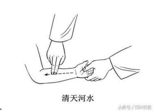 1. 天河水:位于宝宝手腕横纹中点,向上推100次,可以清热解毒,退烧效果显著。